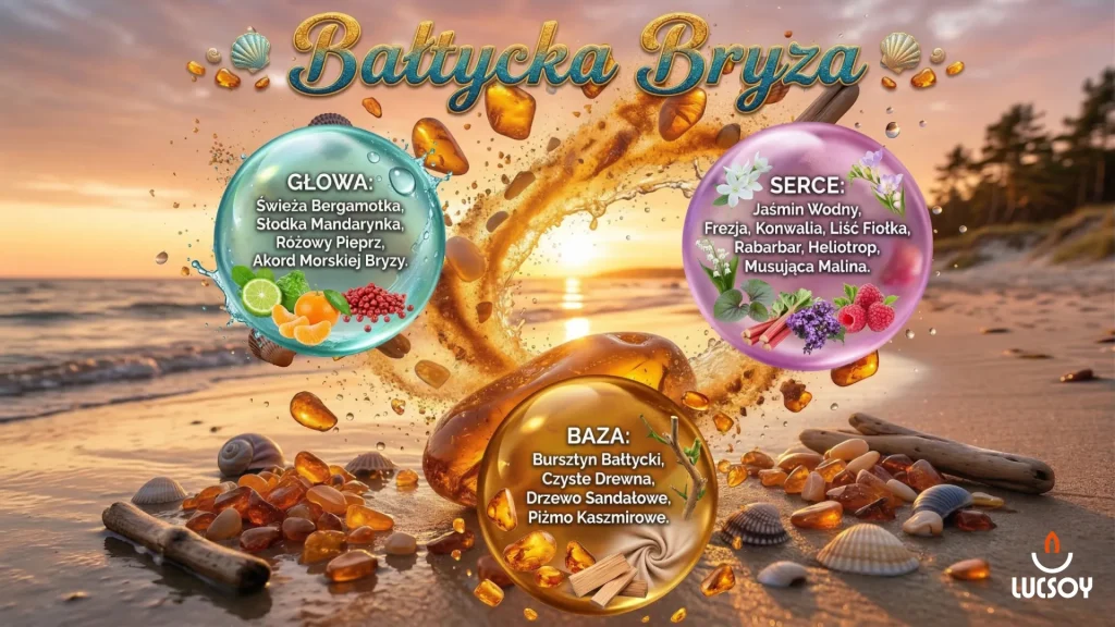 Niezależnie od tego, jak bardzo przytłacza Cię miejski zgiełk, ten zapach natychmiast przenosi Cię na spokojną, nadmorską plażę skąpaną w rześkim, porannym powietrzu. Szlachetny aromat bałtyckiego bursztynu i kaszmirowego piżma, przełamany morską bryzą oraz soczystą mandarynką, tworzy w Twoim salonie przestrzenną, niezwykle elegancką aurę głębokiego relaksu. Wybierając tę ręcznie zalaną świecę premium w czarnym, matowym szkle, zyskujesz nie tylko wyrafinowany dodatek do wnętrza, ale przede wszystkim swój własny, codzienny rytuał odzyskiwania życiowej harmonii.