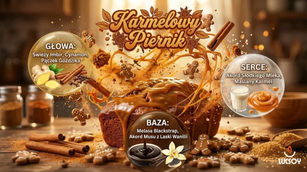 Wskazówka od eksperta: Karmelowy Piernik to zapach idealny na chłodne popołudnia i wieczory. Jego korzenno-słodki profil działa jak „zapachowa kotwica”, która pomaga organizmowi wyciszyć się po pracy i wprowadza w stan głębokiego, błogiego relaksu.